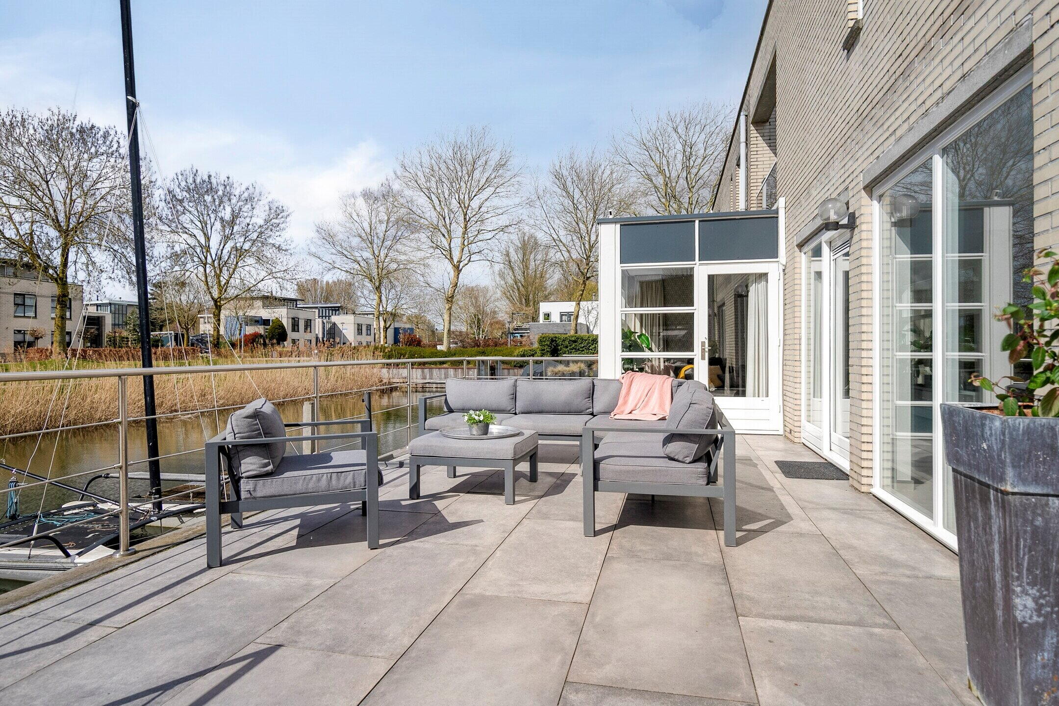 De brede opzet van het perceel zorgt voor een royaal en zonnig terras op het zuiden, met een prachtig uitzicht over het water. Hier geniet u in alle rust van optimale bezonning en een hoge mate van privacy.