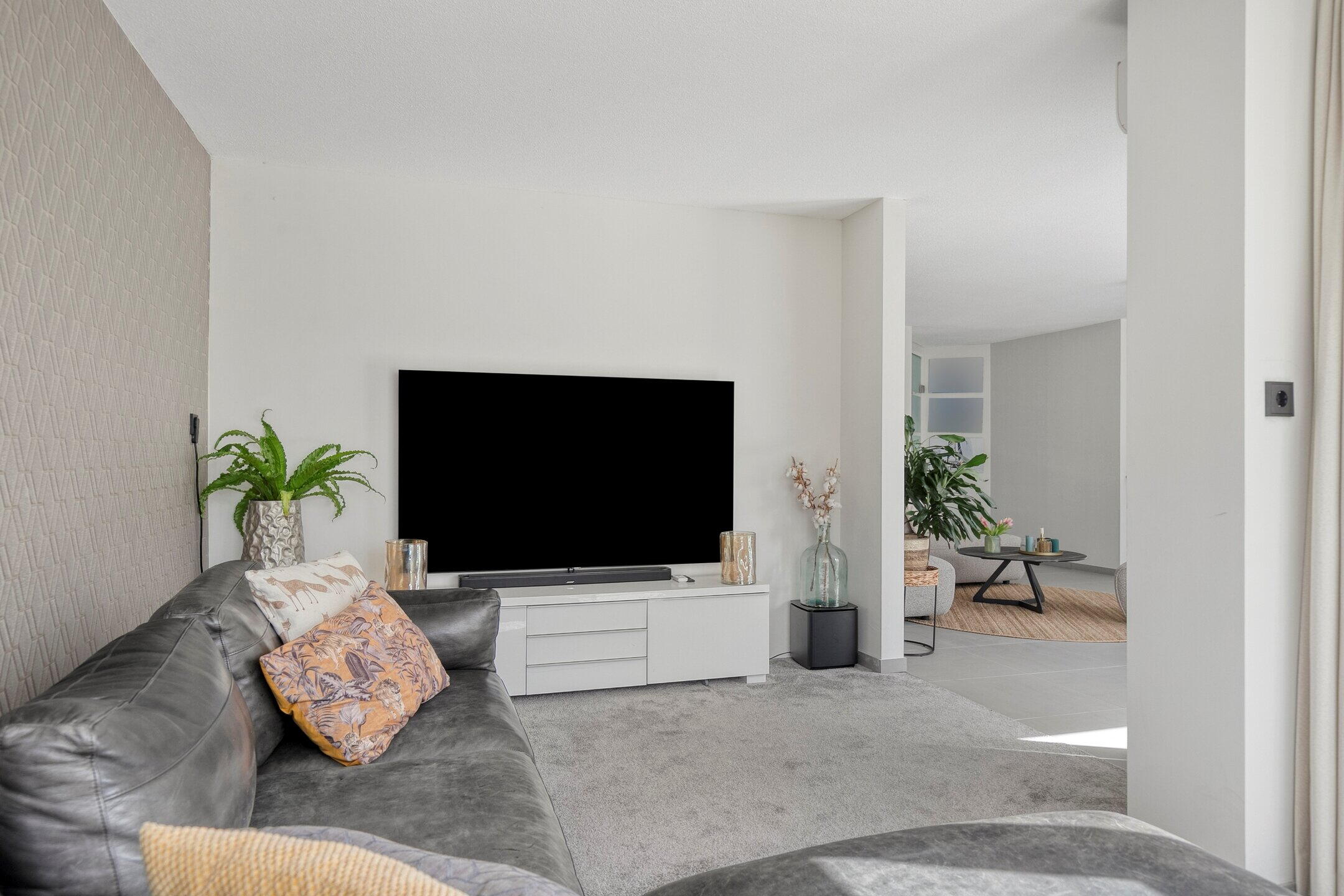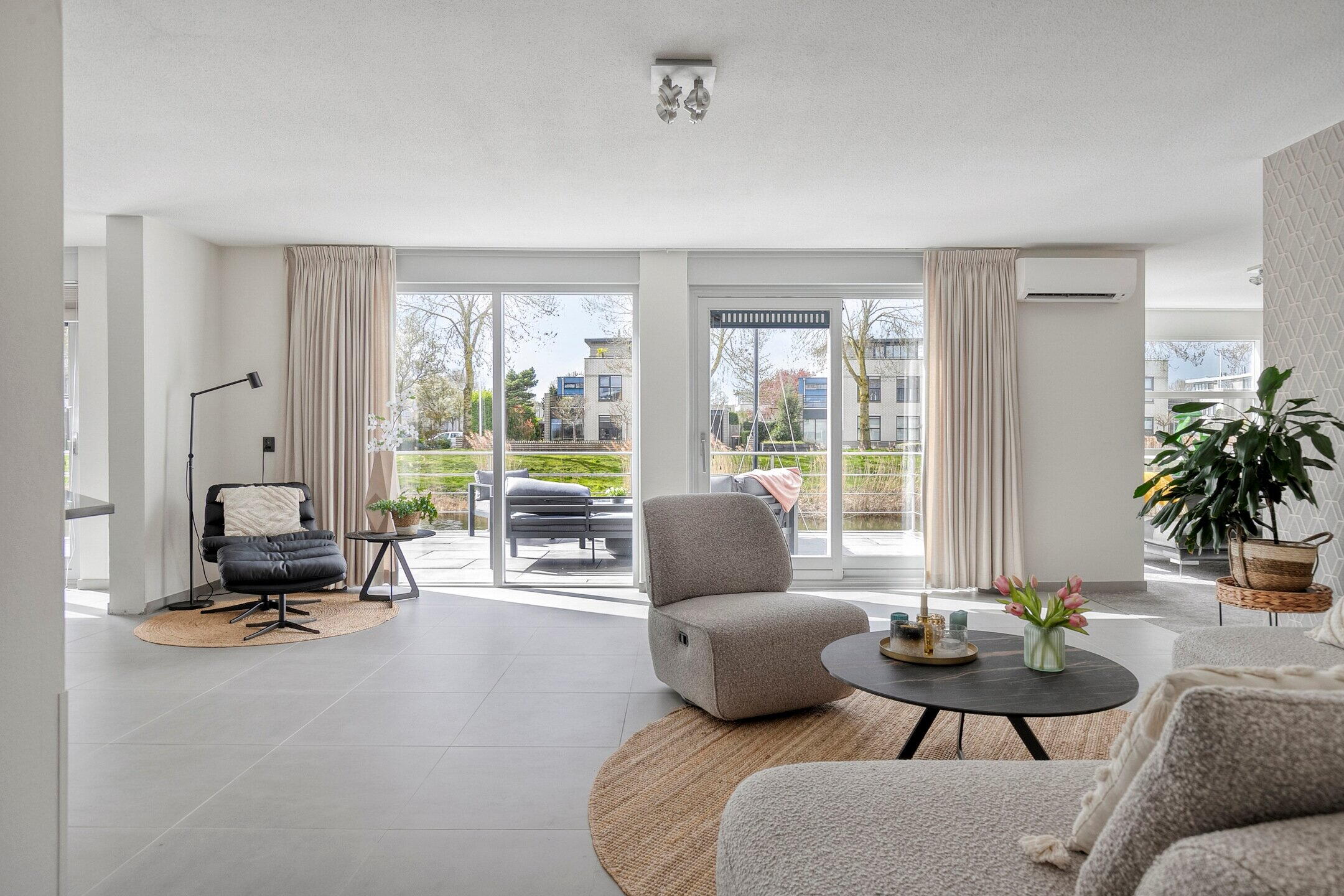 De villa is hoogwaardig afgewerkt en uitstekend onderhouden. De royale woonkamer kenmerkt zich door grote raampartijen, waardoor een bijzonder lichte en open leefruimte ontstaat met een directe relatie tot het buitenleven en het water.